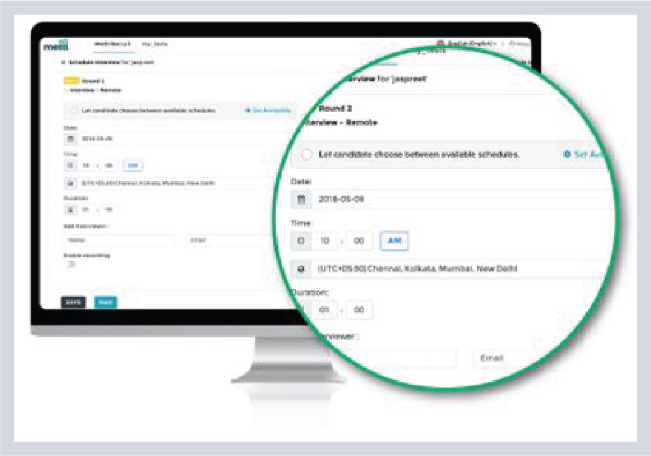 In the next step, conveniently schedule interviews, with the liberty to choose the date, time, location, language and share calendar invites, ensuring seamless execution. Features such as auto-reminder emails, an audio-recording option and the option to choose from 11 supporting international languages enable seamlessly executing the interview process.