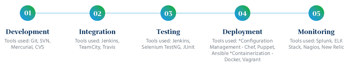 • Setting up a continuous pipeline for integration and delivery through expansive knowledge of purposeful tools is the key.